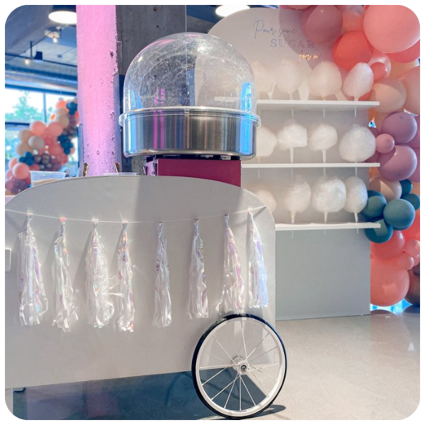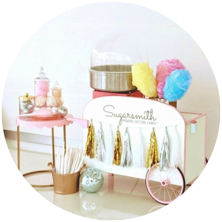 Our cotton candy catering is a modern spin on a nostalgic treat. It is so much better than the cotton candy of your childhood. It all begins with organic cane sugar that has been flavored naturally. We spin that sugar into cottony poufs, right before your eyes. But we don’t finish there. Nope. Each pouf is then totally glammed up with edible glitter, sprinkles, or other perfectly paired - and super fun - toppings. Don’t be surprised if you feel the need to take a selfie with your pouf before eating it. Pretty much everyone does.
